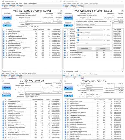 HDD Western Digital (WD) VelociRaptor WD1500HLFS 150 Gb 10000 RPM + 2х Seagate Barracuda 7200.12 500Gb